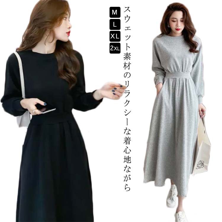 マキシワンピ マキシ丈ワンピース スエットワンピース 裏起毛 パイル 薄手 厚手 防寒 あったか 暖・・・