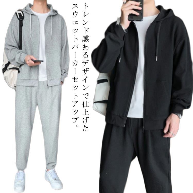 ハイネックパーカー セットアップ スウェット 裏起毛 セット メンズ かっこいい スウェット 裏起毛・・・