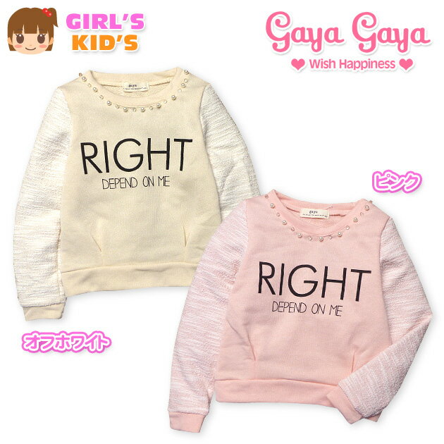 子供服 女の子 プルオーバー 長袖 gaya girl ガヤガール 裏起毛 ビジュー ロゴ刺繍 女児・・・