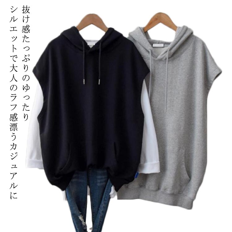 プルオーバーベスト スウエット パーカー レディース スウェットベスト フード付き フード付きパーカ・・・