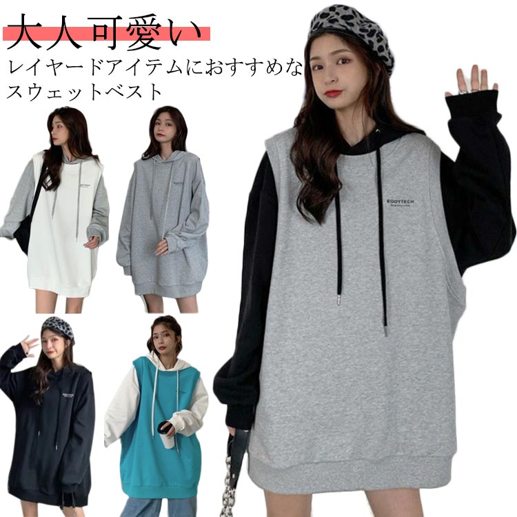 ゆったり レディース スウェット レディース スクールベスト レイヤード 袖なし おしゃれ ベスト ・・・
