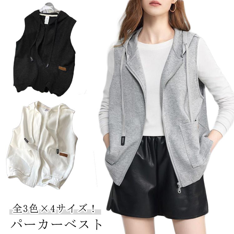 ベスト パーカー レディース 前開き フード付き ジップアップ フード付きベスト リバーシブル 春夏・・・