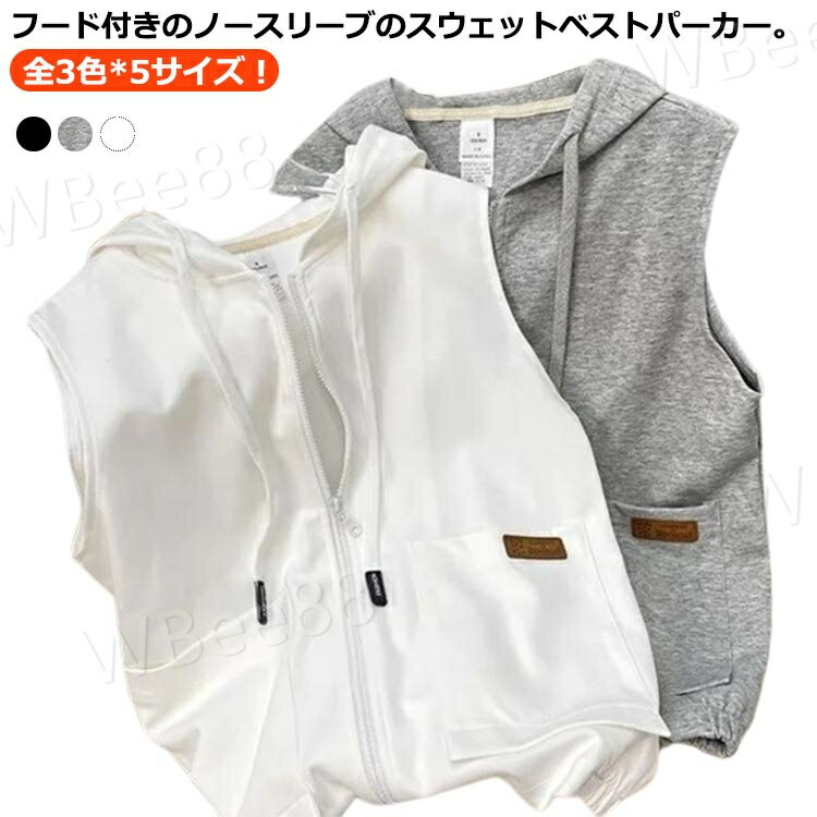 前開き ベスト レディース ジップアップ パーカー ノースリーブ トップス 羽織り アウター 春夏 ・・・
