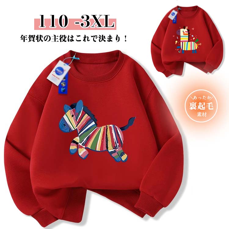 干支 子供服 ペアルック 親子 面白い 撮影 スウェット 午年 トップス 2026年 裏起毛・裏起毛・・・