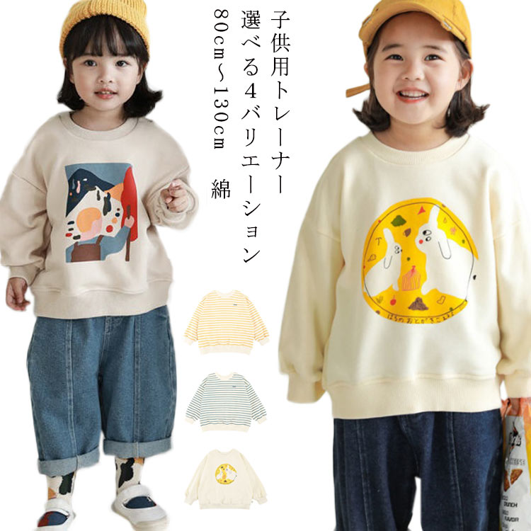 イラスト キッズ スウェット 120 子供服 秋 男の子 トレーナー トップス プリント 女の子 可・・・