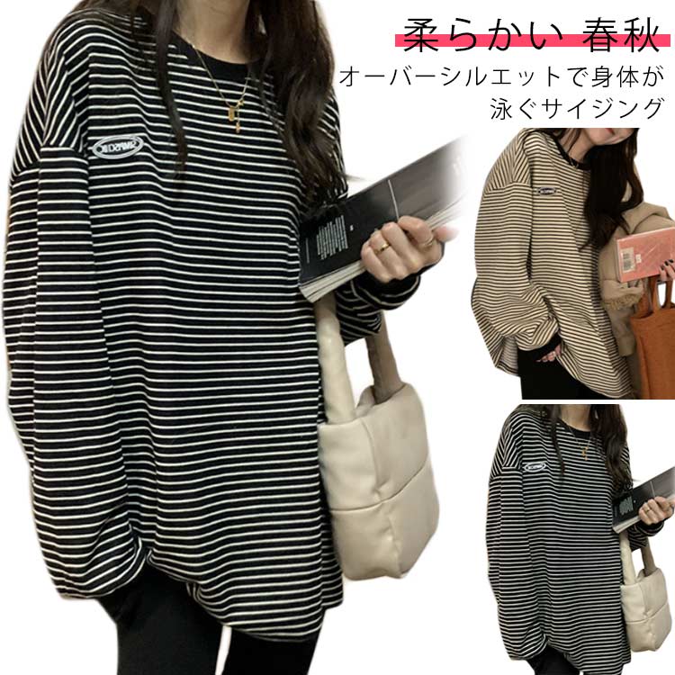 【50%OFF】プルオーバー トップス ボーダー 長袖 トレーナー ワンポイント 刺繍 韓国ファッシ・・・