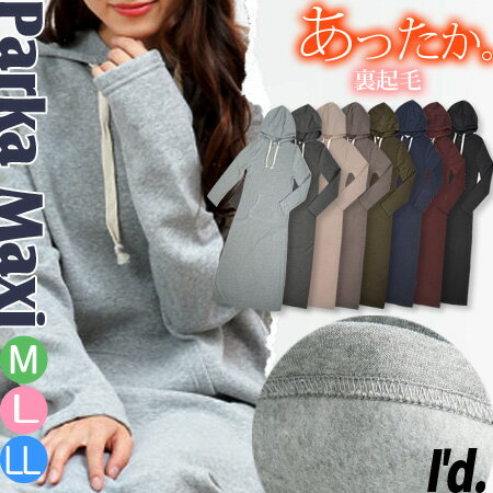 【即納】綿混 裏起毛 ロングパーカー マキシ ワンピース スエット ソフト あったか 長袖 マキシワ・・・