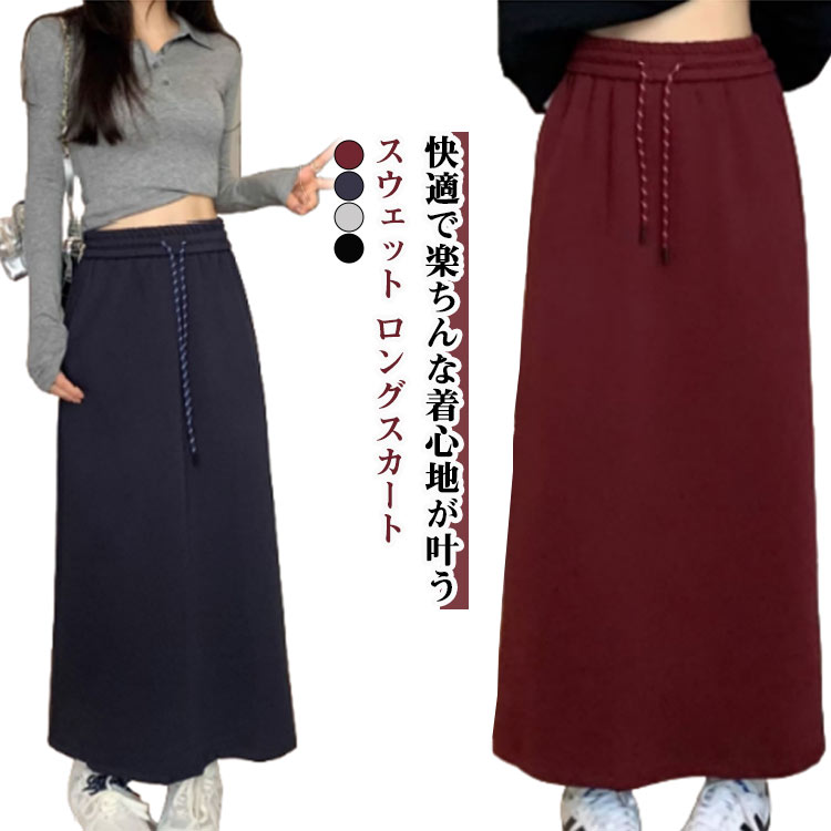 Aライン ロングスカート マキシスカート ドローコード フレアスカート レディース ボトムス スエッ・・・