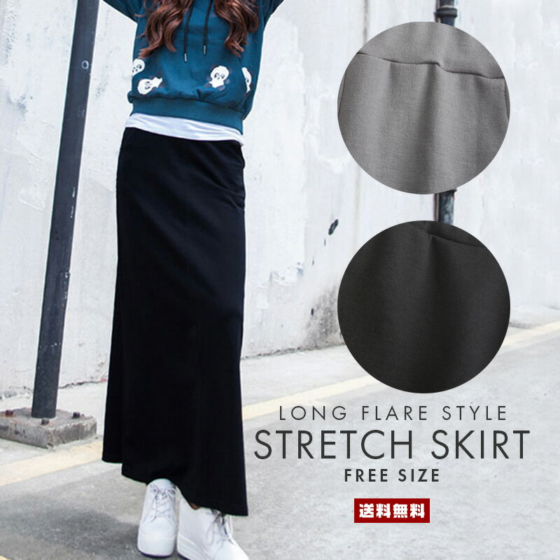 【ポイント20倍】【送料無料】ストレッチ ロング フレアスカート【レディースファッション ロング マ・・・