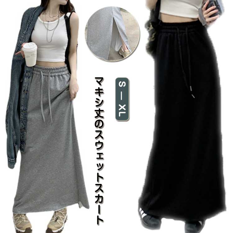 夏 マキシ丈 スカート スウェットスカート ロング丈 無地 ボトムス 秋 春 レディース 体型カバー・・・