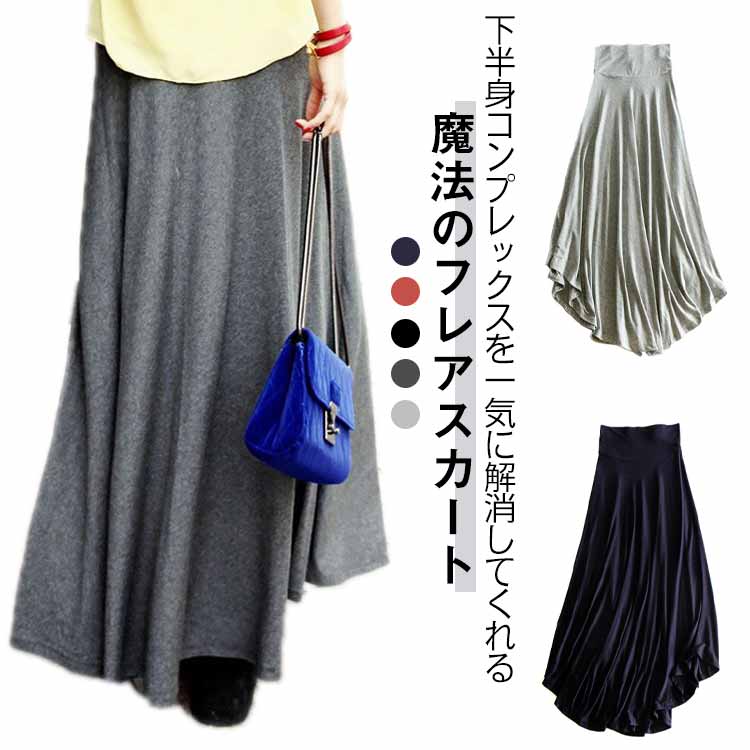 マキシ丈 スカート レディース スウェットスカート ロング丈 無地 春夏 秋 ボトムス 春 夏 大人・・・