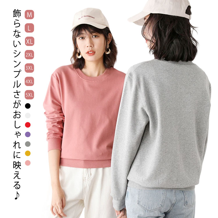 スウェット コットン 長袖 シンプルスウェット トレーナー プルオーバー スエット カットソー レデ・・・
