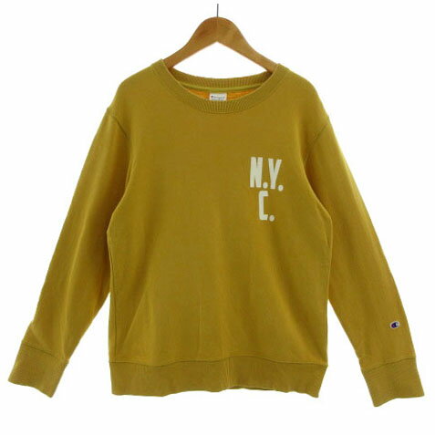【中古】チャンピオン CHAMPION トレーナー スウェット プリント 長袖 マスタード M レデ・・・