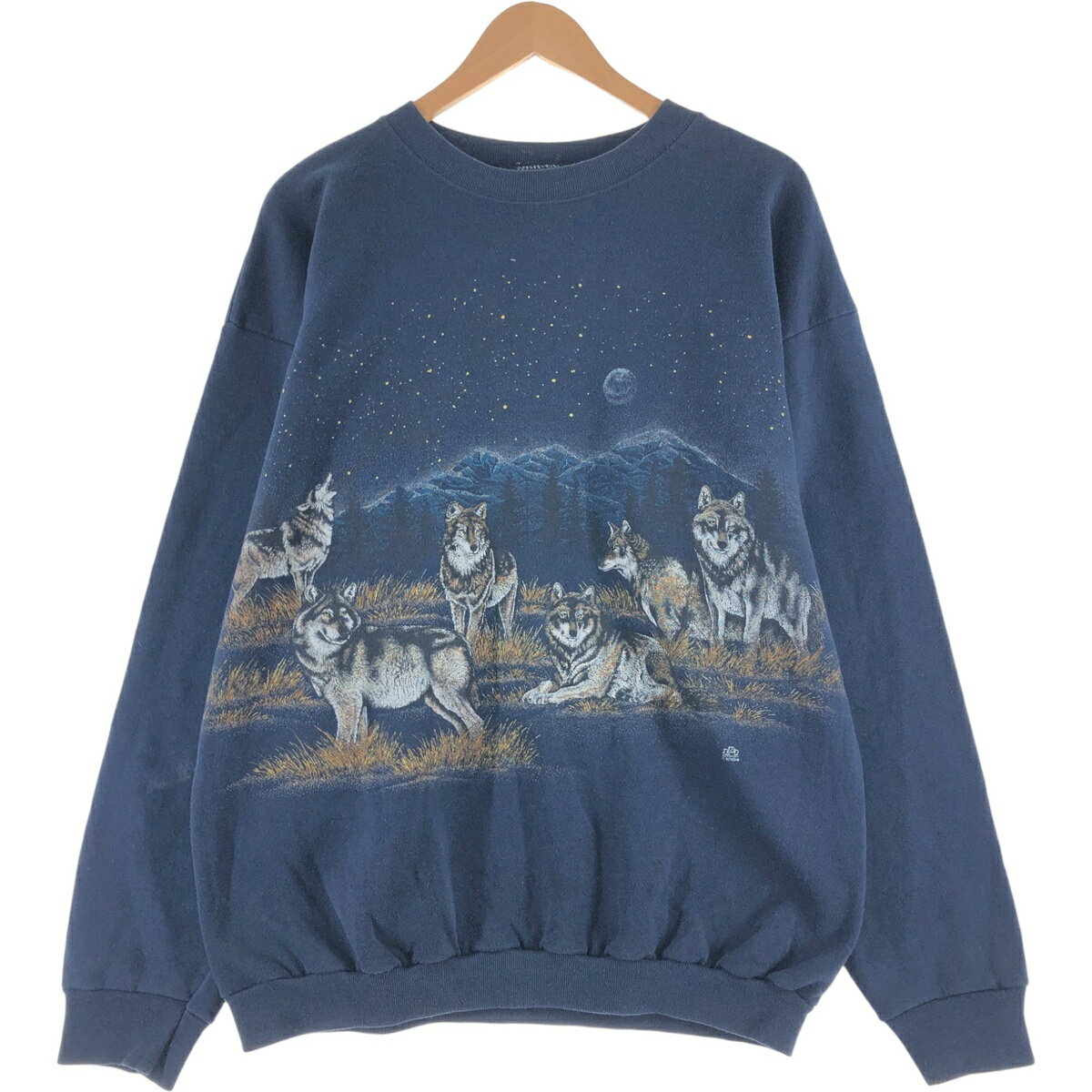 古着 90'S COTTON GROVE DESIGNS オオカミ柄 アニマル スウェットシャツ ト・・・