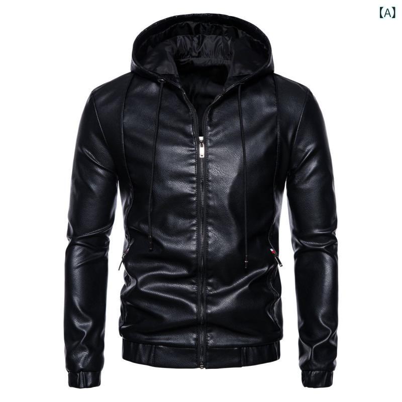 レザージャケット メンズ PUレザー フード付き ライダース ブルゾン 秋冬 防風 防寒 おしゃれ ・・・