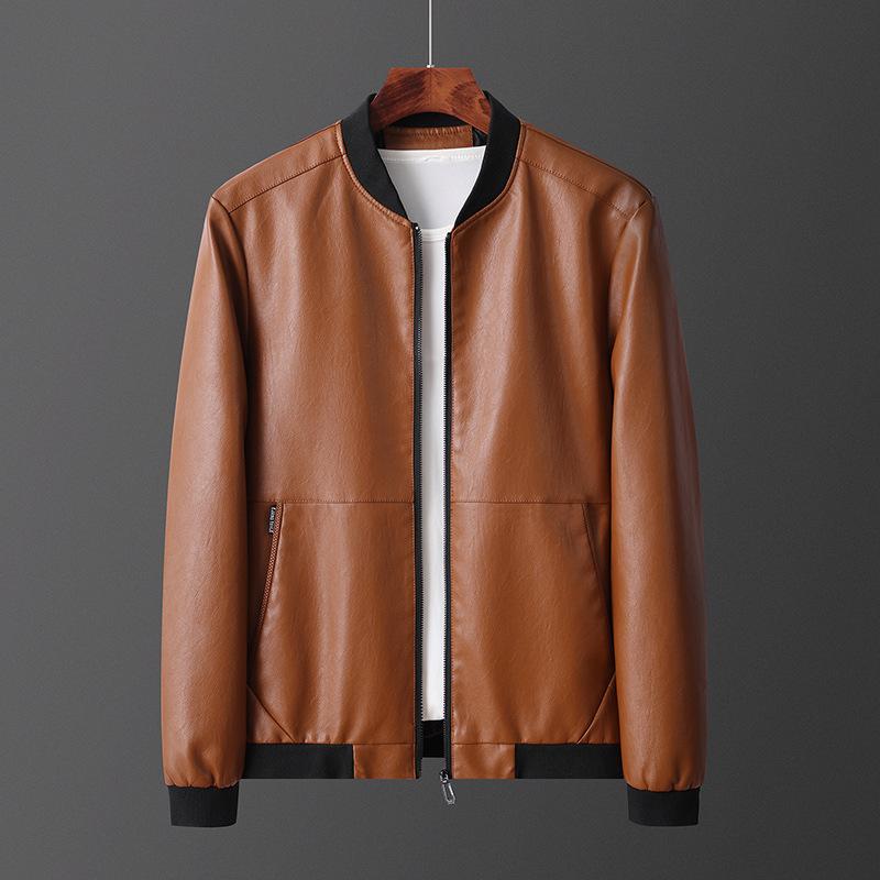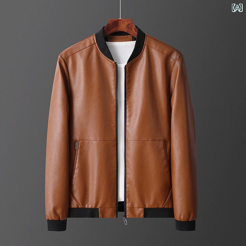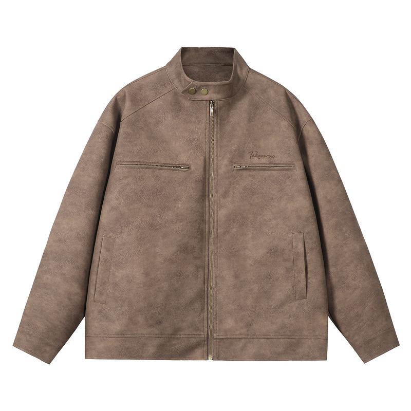 ジャケット 男性用 ブルゾン 立ち襟 鹿 кожа 革ジャン ゆったり 韓国風 ストリート カジュア・・・