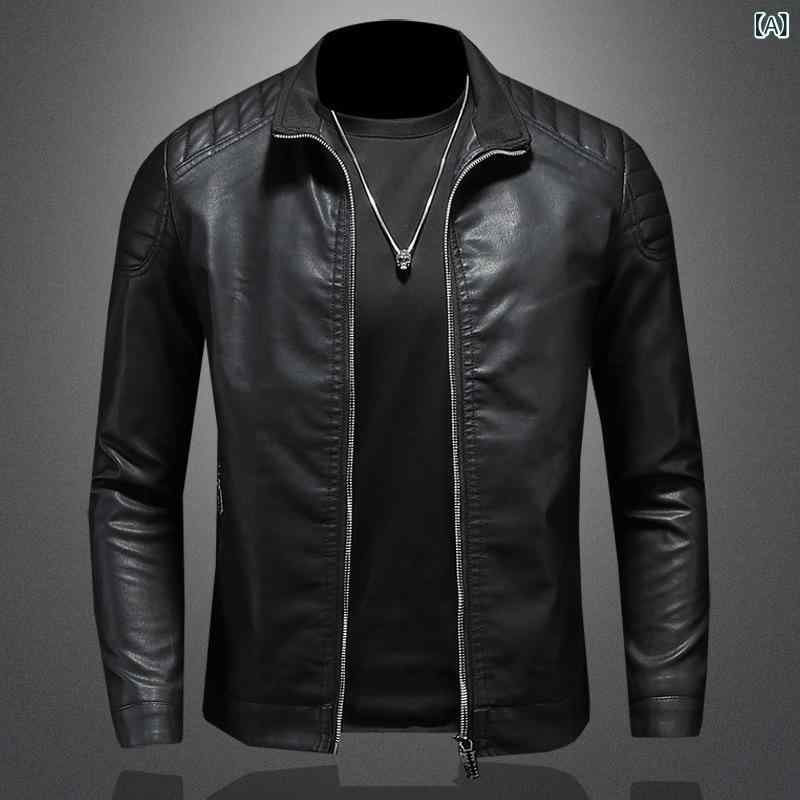 ジャケット メンズ 男性用 レザー 革ジャン フードなし ゆったり 韓国風 カジュアル アウター 防・・・