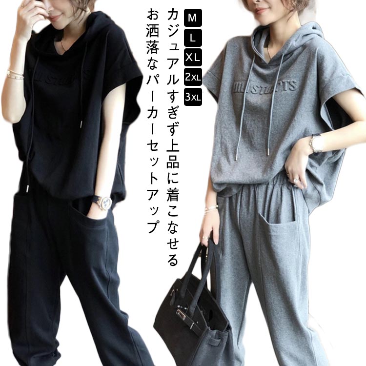 体型カバー レディース 上下セット ジャージ スウェットパンツ 半袖 大きいサイズ 夏 ゆったり ス・・・