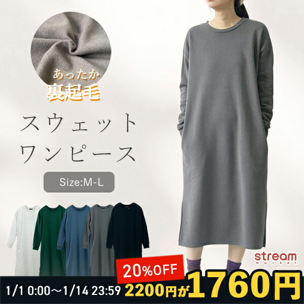 スウェットワンピース レディース 裏起毛 長袖 ミモレ丈 体型カバー ゆったり 大きめサイズ 無地 ・・・