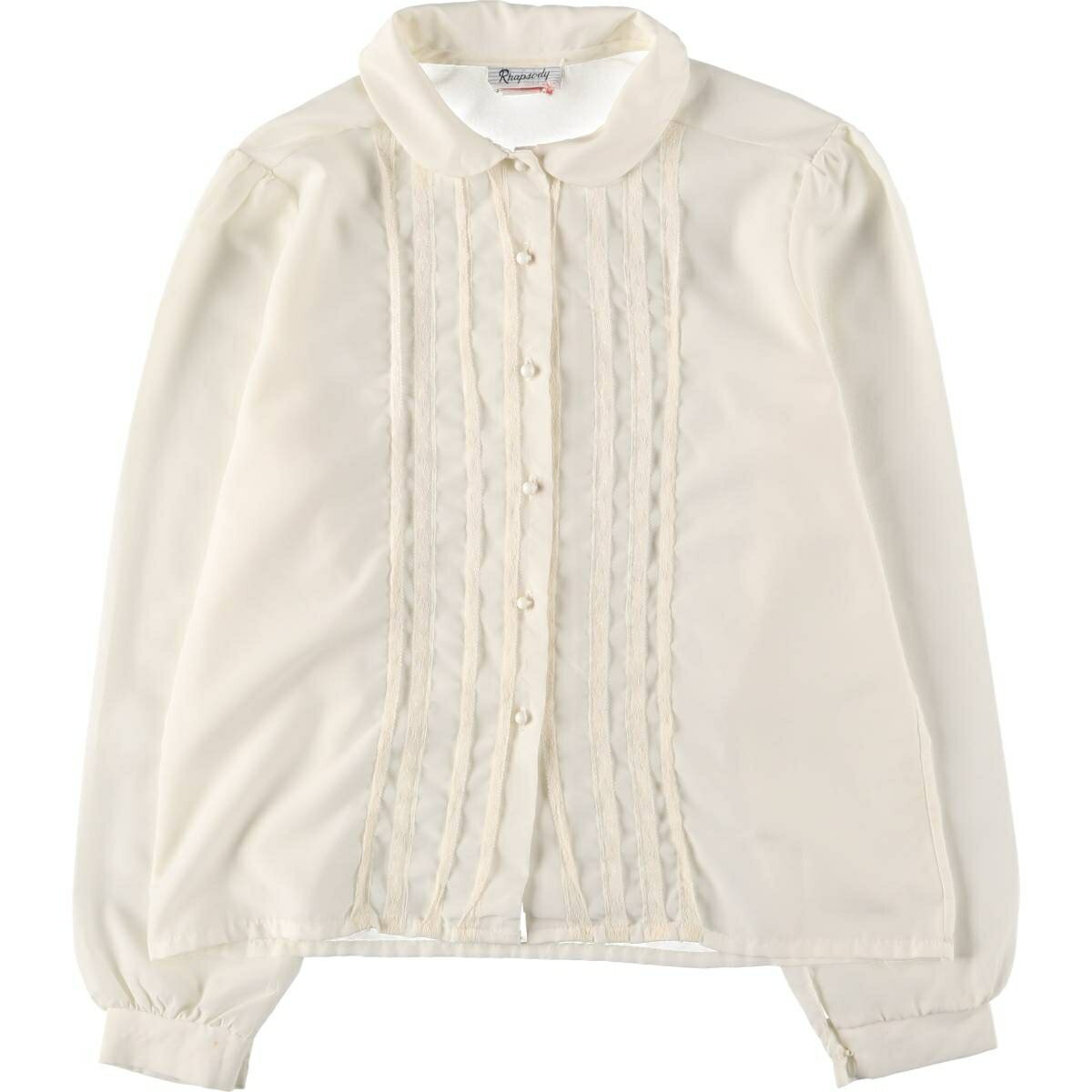 古着 Rhapsody レース付き ラウンドカラー 長袖 ブラウス レディースL相当 /eaa525・・・
