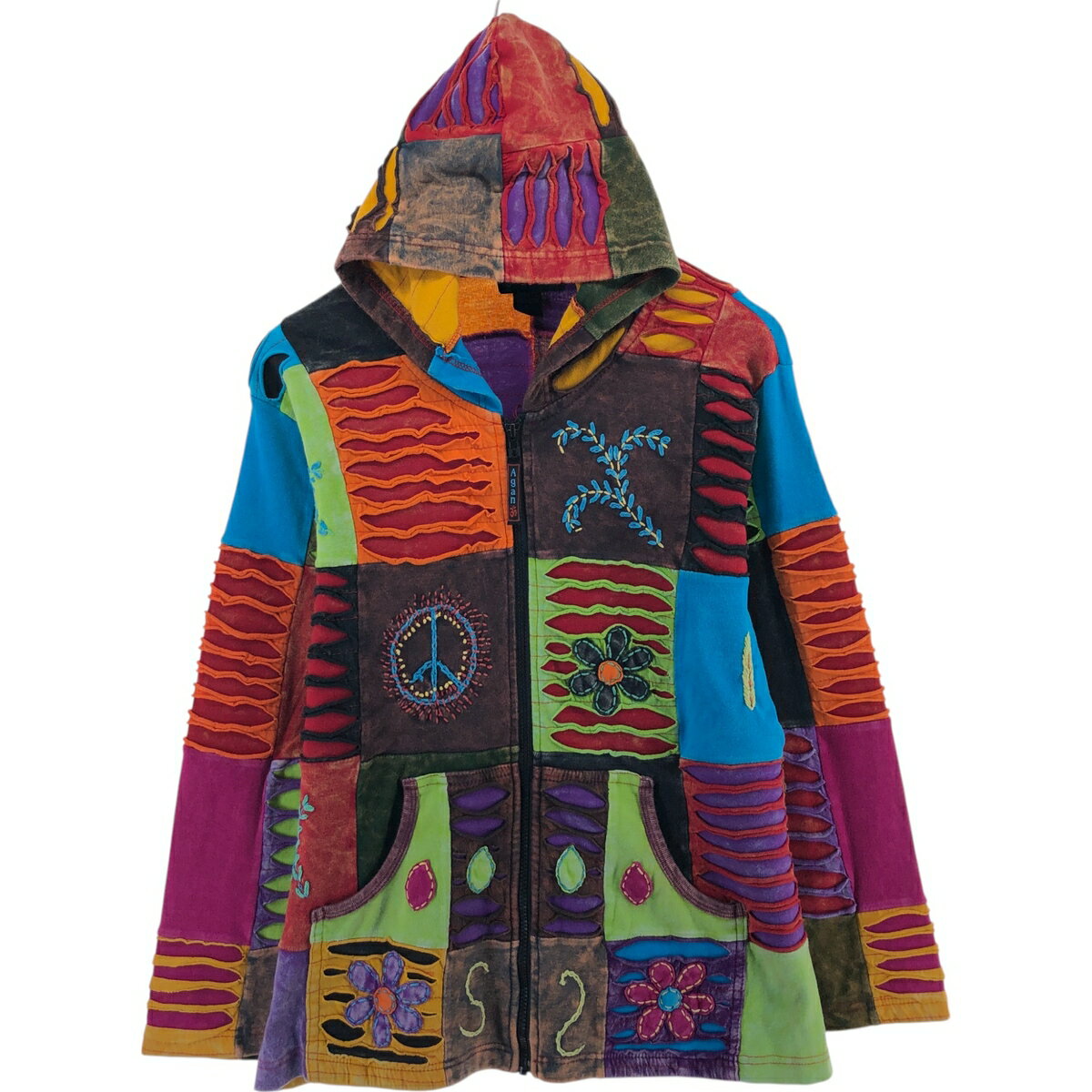 古着 Agan Traders 総柄 ネパールパッチワーク スウェットフルジップパーカー ネパール製・・・