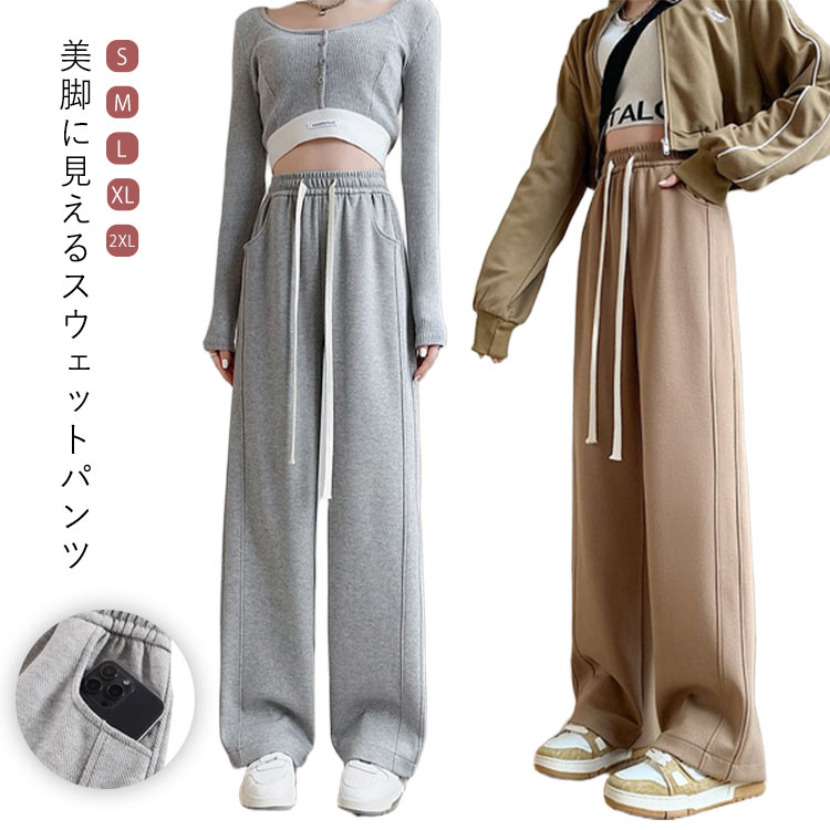 スウェットパンツ ワイドパンツ レディース 裾 2way 軽量 ロングパンツ ボトムス トレーニング・・・