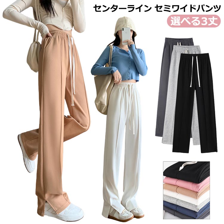 スウェットパンツ セミワイド セミワイドパンツ スリット入り パンツ ストレート ロングパンツ 春 ・・・
