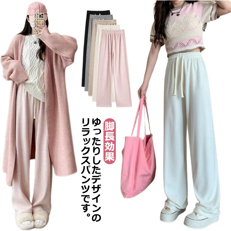 ロングパンツ スウェット 脚長効果 レディースパンツ ゆったり 美脚 スウェット ワイドパンツ 無地・・・
