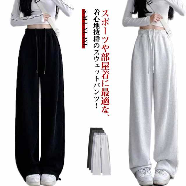 秋 春夏 レディース スポーツウェア 楽ちん ロングパンツ ワイドパンツ ウエストゴム スウェットパ・・・