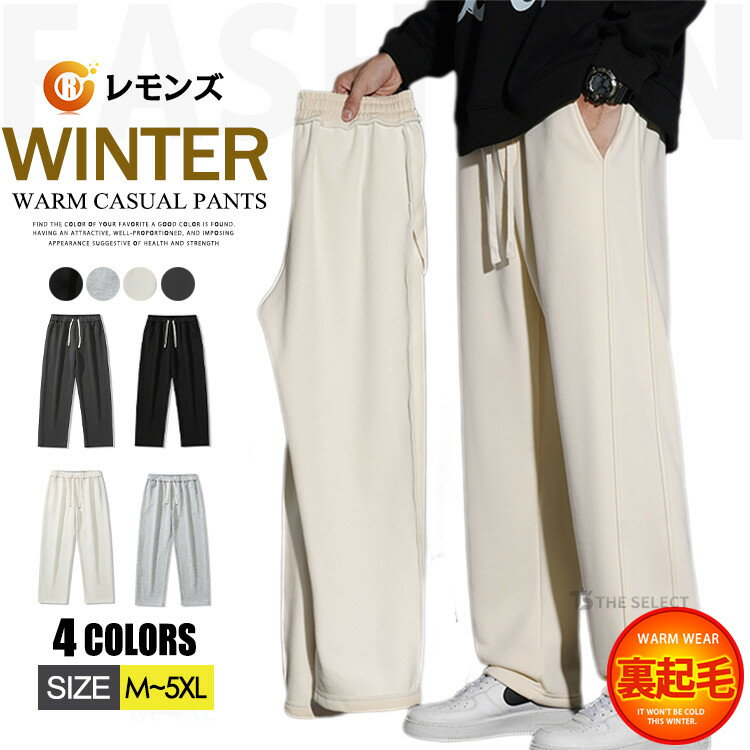 ワイドパンツ メンズ 裏起毛 ロングパンツ 裏ボア スウェット ズボン ストレートパンツ 暖 パンツ・・・