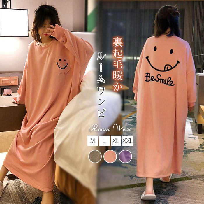 ルームウェア ワンピース パジャマ 裏起毛 暖かいワンピース 秋冬パジャマ 裏起毛ルームウェア ネグ・・・