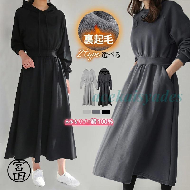 ワンピース 2TYPE選べる 裏起毛 パーカー パーカーワンピース レディース 秋冬 きれいめ 長袖・・・