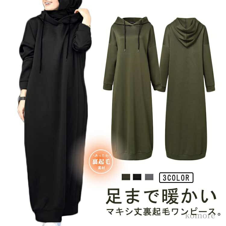 【送料無料】トレーナー フード スウェット パーカー フード 裏起毛 マキシ丈ワンピース 長袖 マキ・・・
