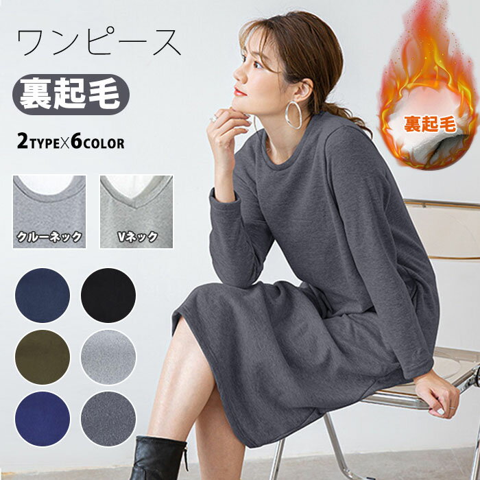 【クーポン利用で5480円】マキシ丈ワンピース スエットワンピース 裏起毛 パイル 薄手 厚手 防寒・・・
