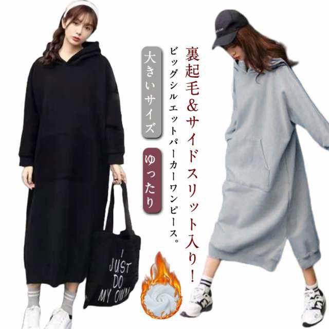 裏起毛 ワンピース パーカーワンピース レディース フード付き プルオーバー ワンピース 長袖 ロン・・・