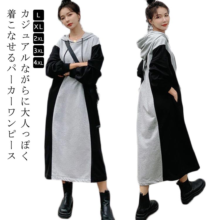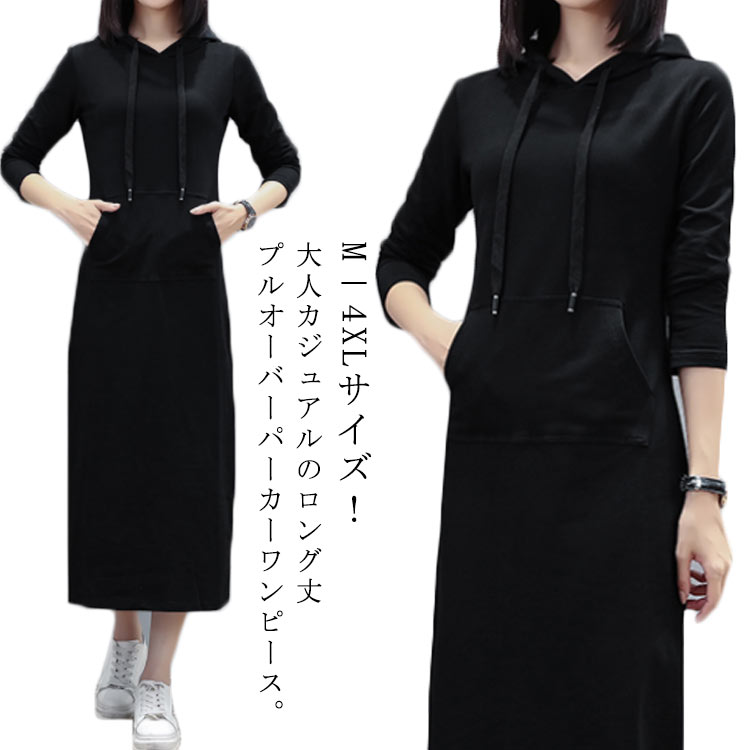 M−4XLサイズ!ロングパーカーワンピース ワンピース 裏起毛 パーカーワンピース スウエットワンピ・・・