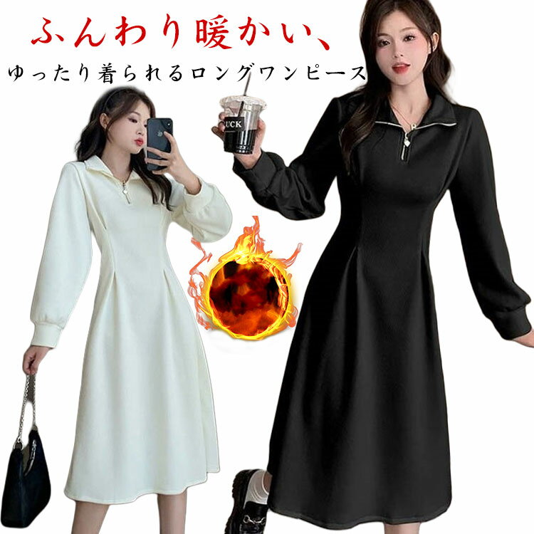 レディース ロングワンピース 大きいサイズ 裏起毛あり/なし スウェットワンピース 長袖 ウエストシ・・・