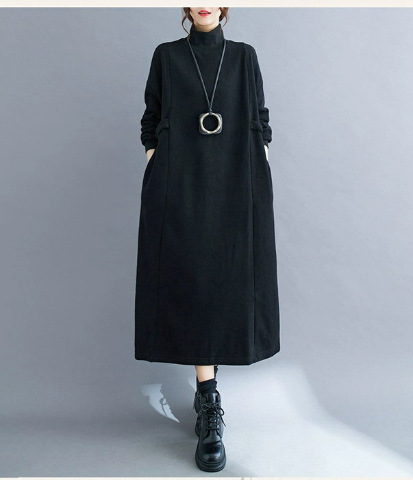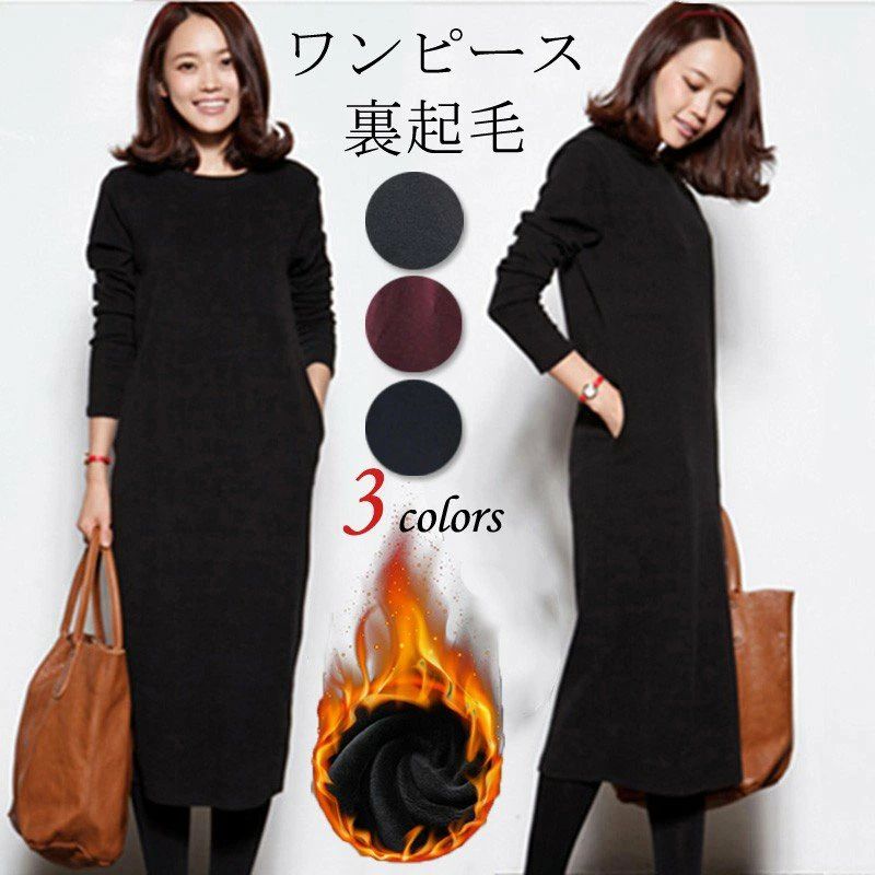 ワンピース 裏起毛 マキシ 秋冬 レディース 長袖 スウェットワンピース 無地 暖かい マキシワンピ・・・