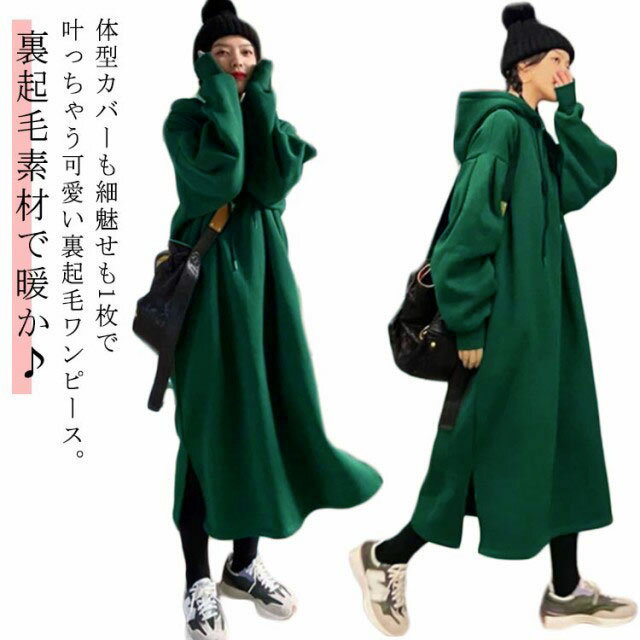 【】パーカーワンピース スウェットワンピース 裏起毛ワンピース パーカー ロングワンピース 長袖 裏・・・