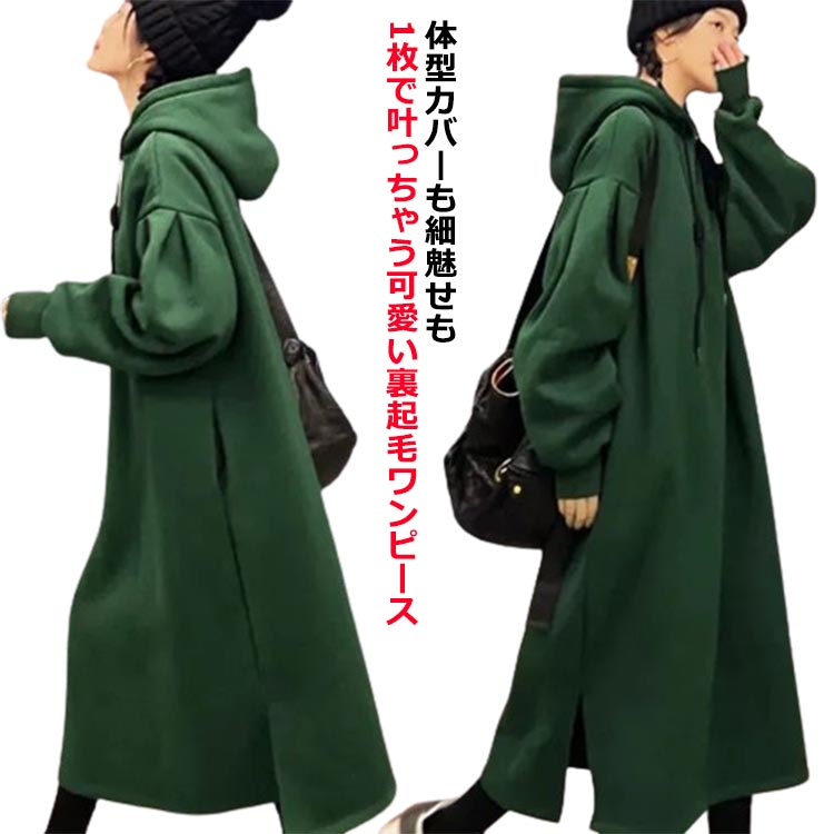 ロングワンピース あったか レディース 冬 カジュアル フード付き 暖かい パーカー ロング丈 大人・・・