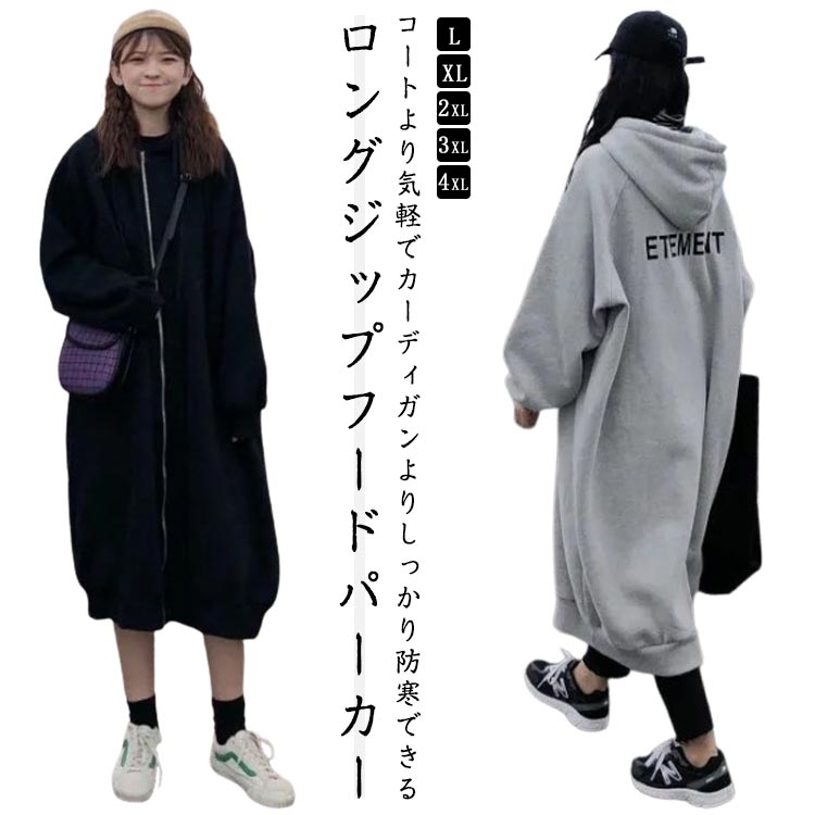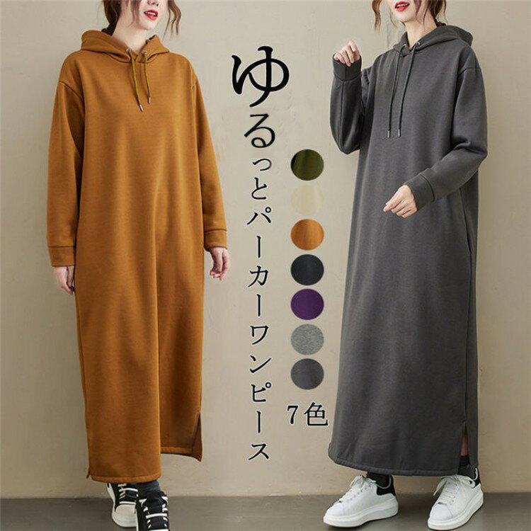 ロング ワンピース パーカー レディース 長袖 アウター 綿 ゆったり フード付き 裏起毛 トップス・・・