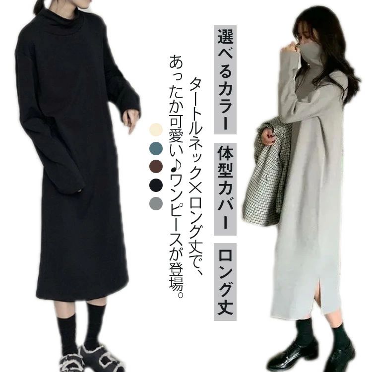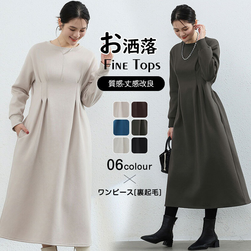 裏起毛ワンピース 洗える 長袖 レディース ワンピース ロング丈 ストレッチ スウェット ボア 裏シ・・・