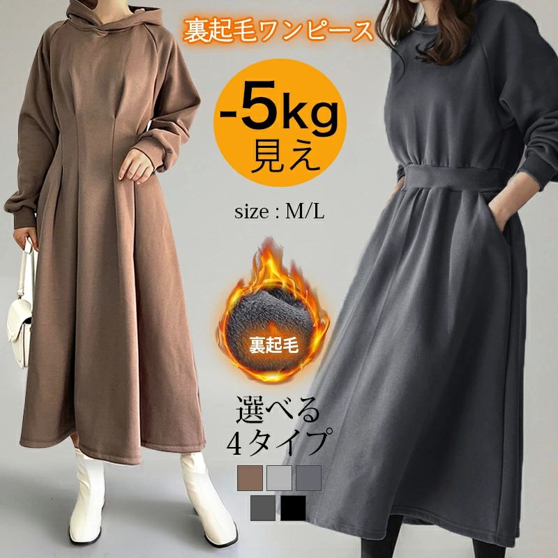 【クーポン最大1000円OFF!】ワンピース 4TYPE選べる 裏起毛 パーカー きれいめ 長袖 カ・・・