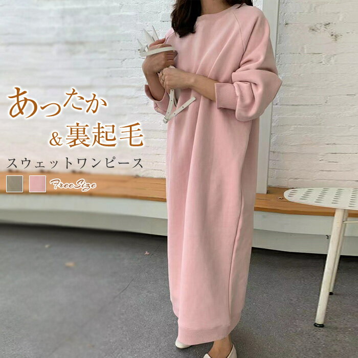 秋冬ワンピース 裏起毛 ワンピース レディース 暖かい 保温 防寒 スウェットワンピース 裏起毛 裏・・・