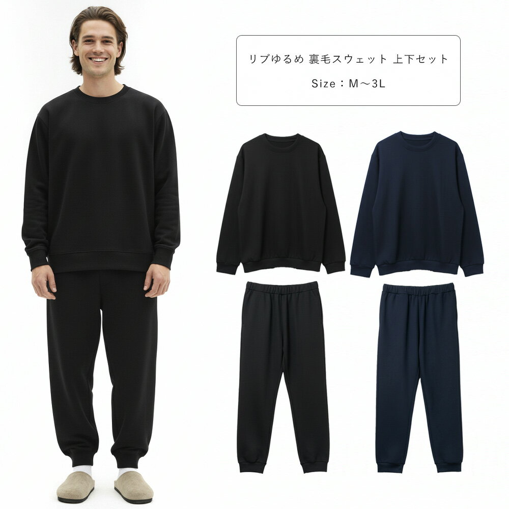 裏毛 スウェット 上下 セットアップ 無地 メンズ ウエストゴム 裾リブ ゆったり やわらかい ルー・・・