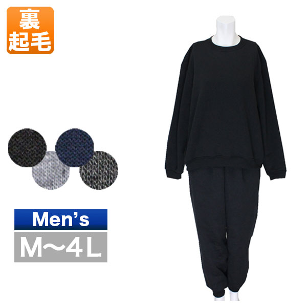 裏起毛スウェットパジャマ 上下セット メンズ 秋冬用 長袖 黒/紺/グレー/チャコール M/L/LL・・・