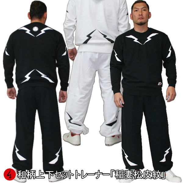 【新春初売20%OFFセール】和柄上下セット【XLまでのサイズ】トレーナー「稲妻松皮紋」アメカジ 家・・・