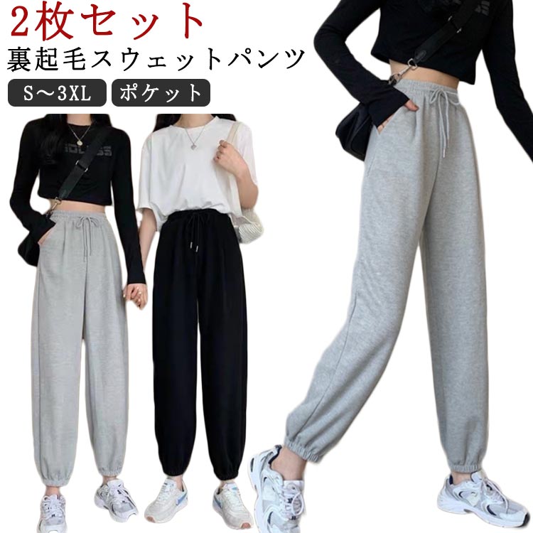 【2枚セット】スウェットパンツ レディース 裏起毛 無地 黒 グレー パンツ スエット 保温 スウェ・・・