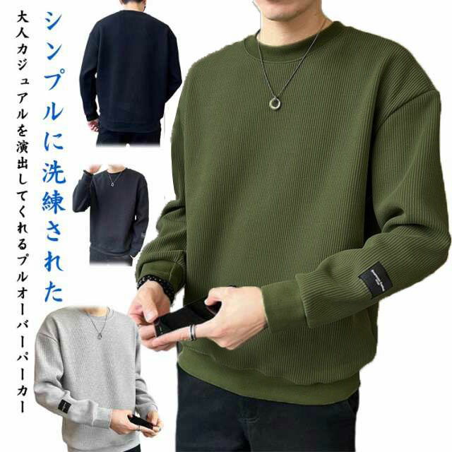 ゆったり メンズ 長袖 トレーナー プルオーバー クルーネック スエット おしゃれ プルオーバー ス・・・