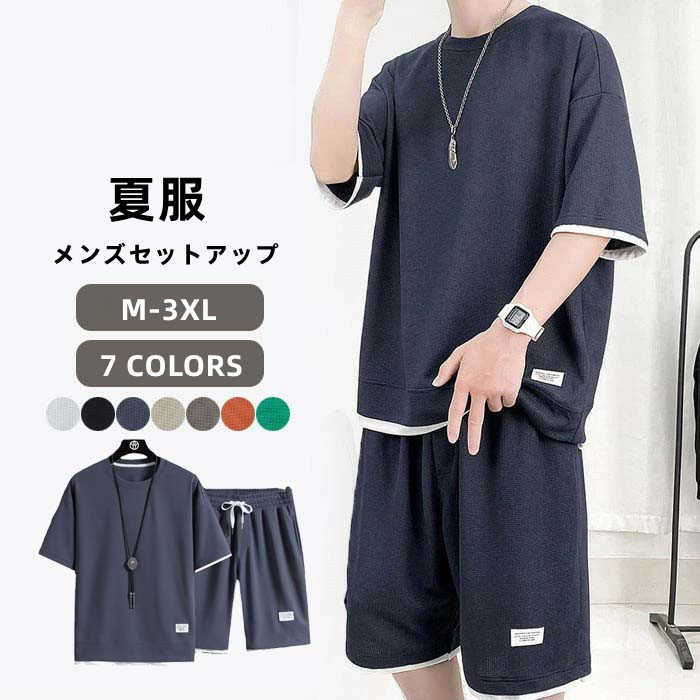 セットアップ メンズ tシャツ ショートパンツ ワッフル編み 半袖 スエット ボトムス 短パン 半ズ・・・